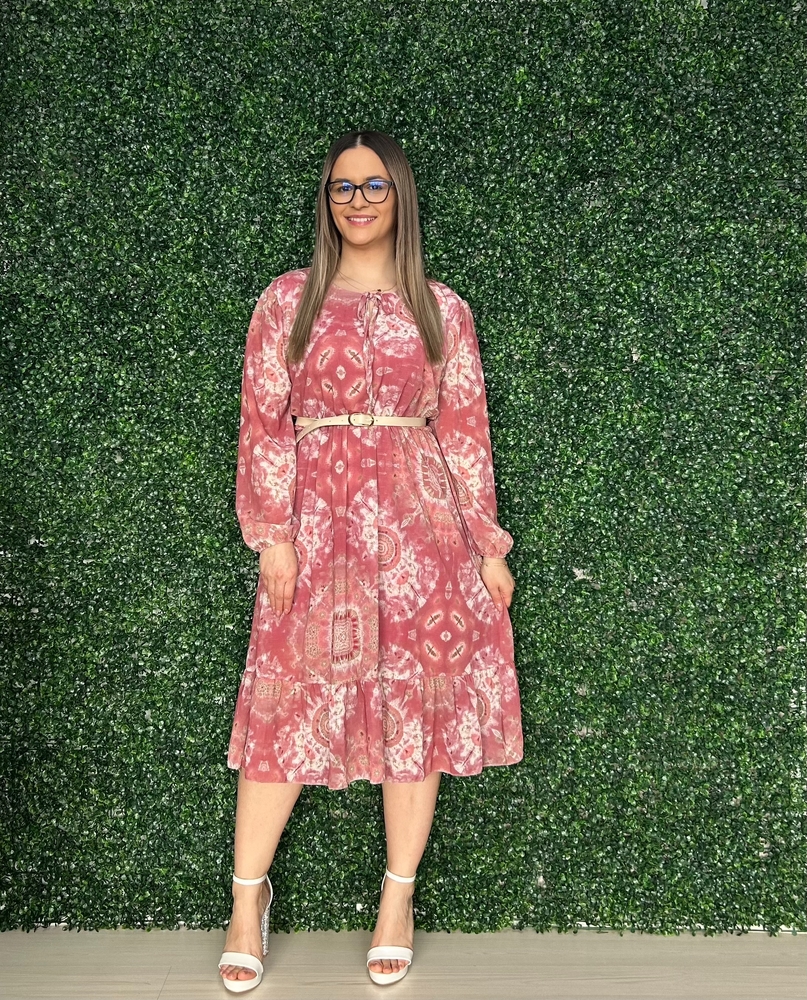 Rochie IE MIRA-prevazuta cu dublura de bumbac, snurulet in talie si maneci 3/4